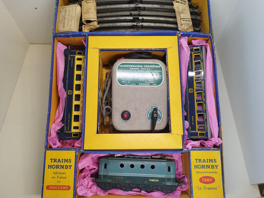 Train Hornby "Le Drapeau" French 20v Overhead Electric Train Set - 1950's